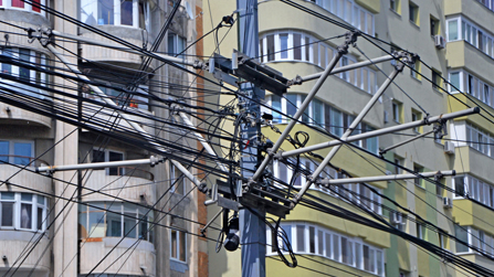 來到群眾所反映的小區(qū),只見小區(qū)內(nèi)大部分建筑物的外墻都懸掛著從各層住戶家中放下來的電線,不僅是多層住宅存在這樣的情況,甚至是一二十層高的住宅,也同樣懸掛著幾十米長的電線,這些五顏六色、長度不一的電線直接裸露在外,遍布小區(qū)各處。
