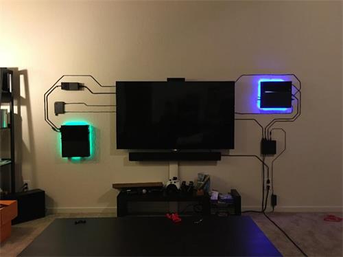 想不到該怎么敷設(shè)擺形狀的可以參考一下國外小哥整理游戲機(jī)電源線的擺法,模仿電路板紋路敷設(shè),紋路簡(jiǎn)單又具有科技感,看著都覺得很硬核,大家不妨可以一試。
